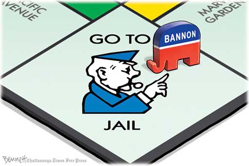 The Justice Department had taken on the “wrong guy this time. I’m telling you right now, this is going to be the misdemeanor from hell for Merrick Garland, Nancy Pelosi and Joe Biden.” — Steve Bannon vowing Monday to challenge federal contempt charges for refusing to cooperate with a House committee investigating the Jan. 6 attack on the Capitol.