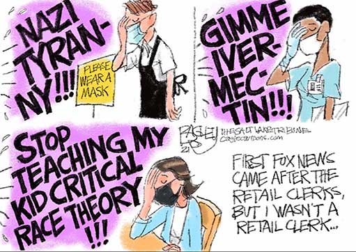 Tragically, Discussing Covid in America is primarily a political discussion. It is certainly not a medical one. Overwhelmingly, that reality is the fault of three people. Trump, Murdoch and Zuckerberg. Trump is directly responsible for the deaths of hundreds of thousands of Americans because of his insanity, narcissism, incompetence, malice and selfishness.