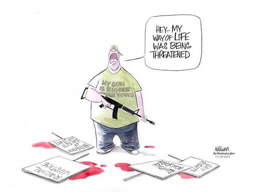 The United States has a serious problem with political violence, particularly right-wing violence, which has overtaken Islamist attacks as the No. 1 domestic terrorism threat. The list of right-wing outrages includes Oklahoma City 1995 (168 dead), Pittsburgh 2018 (11 dead) and El Paso 2019 (23 dead). The 2020 Kenosha, Wis., shooting, which left two dead, is part of the same alarming trend. Even though Kyle Rittenhouse was found last week to have acted in self-defense, he remains morally culpable for showing up with an assault-style rifle at a protest, looking for trouble.