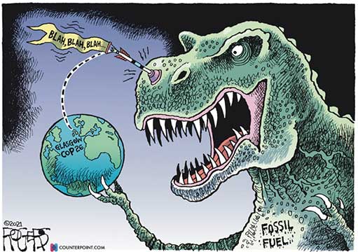 “The COP26 climate summit has turned into a PR event, where leaders are giving beautiful speeches and announcing fancy commitments and targets, while behind the curtains governments of the Global North countries are still refusing to take any drastic climate action.” — Greta Thunberg.