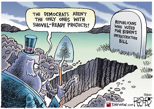Rep. Lauren Boebert (R-Colo.) tweeted it was “Time to name names and hold these fake republicans accountable.” And, this past week, Rep. Matt Gaetz (R-Fla.) told a pro-Trump podcast that there was never a situation during the infrastructure debate in which Republicans should work with Democrats: “They were going to win it all, or we were going to win it all.”
