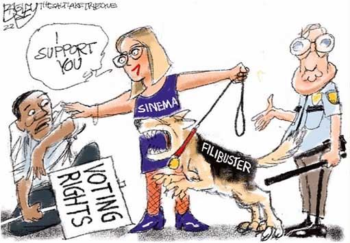 While the reprimand has no practical consequences, it reflects the growing estrangement between the first-term senator and her fellow Democrats, who have been angered by her willingness to help stymie the party’s agenda on issues such as the minimum wage and voting rights. https://www.washingtonpost.com/politics/2022/01/22/arizona-democrats-censure-sinema/