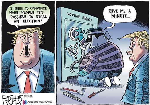 It would be funny if it weren’t so scary.” https://www.latimes.com/politics/story/2022-01-24/trump-secretary-of-state-candidates-threaten-election-integrity