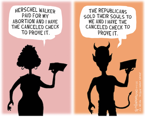 “You cannot tell me that anybody 60 years old would trade brains with Herschel Walker, ’cause you wouldn’t.” — James Carville, in an interview with Vanity Fair. https://www.vanityfair.com/news/2022/10/james-carville-trump-women-2024