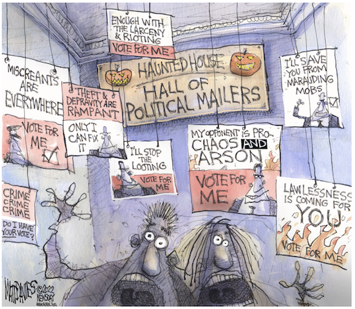 It’s working. Once ahead in the polls, Democrat Mandela Barnes, the lieutenant governor of Wisconsin, is now trailing Republican incumbent Ron Johnson in the state’s race for U.S. Senate, a shift also seen recently in other important races. One factor is an onslaught of negative messaging that seeks to paint Barnes as a crime-loving radical. A key word here is ‘paint.'One of the ads, from the National Republican Senate Committee, ends with a shot that brands Barnes, who is black, as “different” and “dangerous” as it pictures him alongside three congresswomen of color who are members of “The Squad,” none of whom has campaigned with him. For good measure, the state Republican party sent out a mailer in which the color of Barnes’s skin has clearly been darkened. https://www.thebulwark.com/attack-ads-are-darkening-the-skin-tone-of-black-candidates/