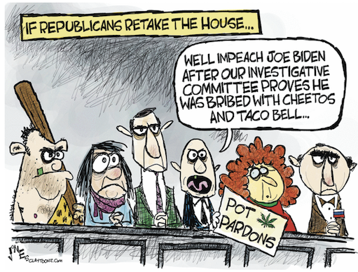 It goes without saying that these Republicans will disband the Jan. 6 committee and impeach Joe Biden. They’ll probably seek vengeance for Greene — and Paul Gosar, who lost his committee assignments for tweeting an anime video altered to show him killing Alexandria Ocasio-Cortez — by stripping Ocasio-Cortez and other progressives of their committee assignments. Expect them to shut down the government more than once and to launch investigations into the Department of Justice over its investigation of Trump. If the 2024 election is disputed, they’ll do all they can to swing it to Republicans. It’s what their voters are sending them to Congress to do.