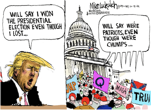 “There’s no real mystery because there are the tweets, thousands of them. But the arc of the coup can be boiled down to just three — when he summoned the mob, egged on the attack, and celebrated it afterward.” — Charlie Sykes: https://morningshots.thebulwark.com/p/a-coup-in-three-tweets