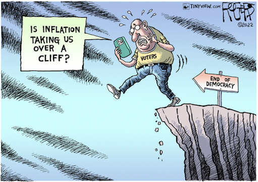 “Inflation’s an issue, but it’s global. It’s global… What’s the Republicans’ plan? They ain’t got nothing. When you bring down unemployment, inflation goes up. Inflation is there but it’s global and not as bad as it is in some countries. We’ll have to message it better in the next three weeks ahead. I think we’re in great shape. Other people don’t want to believe that.” -- Speaker Nancy Pelosi (D-CA) saying Democrats need better messaging on inflation. https://thehill.com/homenews/house/3695490-pelosi-says-democrats-need-better-messaging-on-inflation/
