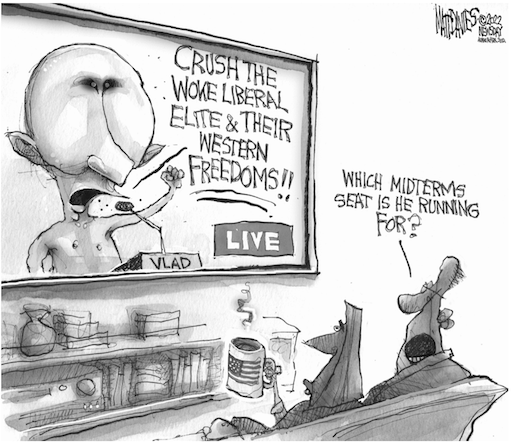 On the campaign trail, Ukraine has hardly registered as an issue, but that is only because so many fundamental questions about the future of American democracy are being contested. If Republicans take back one or both houses of Congress, the reverberations will surely be felt on the battlefield in Ukraine—and even more so if, as expected, Donald Trump soon thereafter announces he is running again for the White House. The former President has retained his admiration for Russia’s authoritarian leader. When Putin launched the invasion of Ukraine last winter, Trump even called his strategy genius. There is a real prospect that Trump could not only run but win. Does anyone doubt that Putin is waiting and hoping for just this outcome? Whatever you call it, this crisis may have only just begun. https://www.newyorker.com/news/letter-from-bidens-washington/putin-is-inventing-a-whole-new-kind-of-nuclear-blackmai