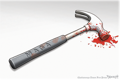 The police said the intruder was David DePape, a 42-year-old from Berkeley, Calif. CNN reported that DePape’s relatives confirmed that a Facebook account spewing Trumpian conspiracies on topics ranging from climate change to Covid was his. In his posts, he cast doubt on the validity of the 2020 election — sharing pillow pusher and Trump lickspittle Mike Lindell’s absurd videos. And he defended the Trump rioters who stormed the Capitol.