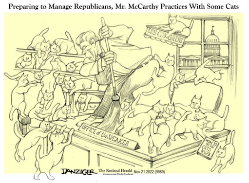 And the House GOP will have to steer legislation through with as few as four votes to spare while its leaders deal with an emboldened Freedom Caucus, internal finger-pointing over a disappointing midterm cycle, and a looming brawl over a 2024 presidential primary that features Donald Trump back in the mix. https://www.politico.com/news/2022/11/28/house-dems-on-gops-thin-majority-welcome-to-hell-00070473