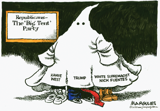 Early this year, the Republican House minority leader, Kevin McCarthy — who could soon become House speaker — castigated Representatives Marjorie Taylor Greene and Paul Gosar for speaking at one of Fuentes’s events. McCarthy’s refusal to say anything about Fuentes’s meeting with the Republican Party’s most influential figure suggests that the boundary between the intolerable and the acceptable is shifting.