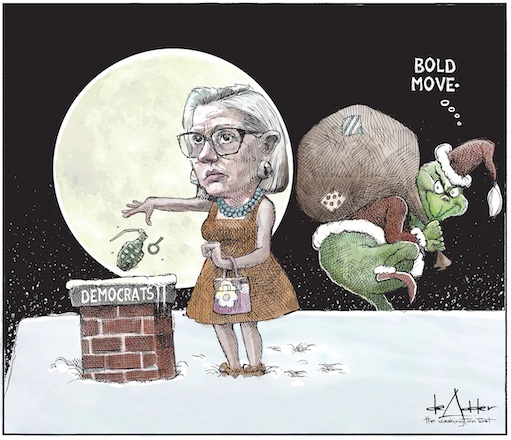 “Herschel (Walker) was like a plane crash into a train wreck that rolled into a dumpster fire. And an orphanage. Then an animal shelter. You kind of had to watch it squinting between one eye between your fingers.” — Republican operative Dan McLagan. https://morningshots.thebulwark.com/p/sinemas-independence-dayWar criminals should not only be convicted after the fall of authoritarian regimes, adding, ‘justice cannot wait.’ We have to establish an international tribunal and bring Putin, Lukashenko and other war criminals to justice. — Russian Nobel Peace laureate Yan Rachinsky calling Russia’s war on Ukraine “insane and criminal” in his acceptance speech in Oslo, Norway. https://www.cnn.com/2022/12/10/europe/russian-nobel-peace-laureate-slams-putin-war-intl/index.html
