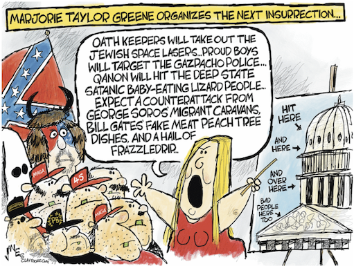 “I’ve been asked to explain MTG’s belief in Jewish space lasers, why she showed up to a white supremacist’s conference, and now why she’s blindly following Kevin McCarthy and I’m not going to go there.” — Rep. Lauren Boebert (R-CO) telling the Daily Caller that she is tired of being lumped together with Greene. https://dailycaller.com/2022/12/19/exclusive-rep-boebert-refuses-explain-marjorie-taylor-greene-blind-support-mccarthy/