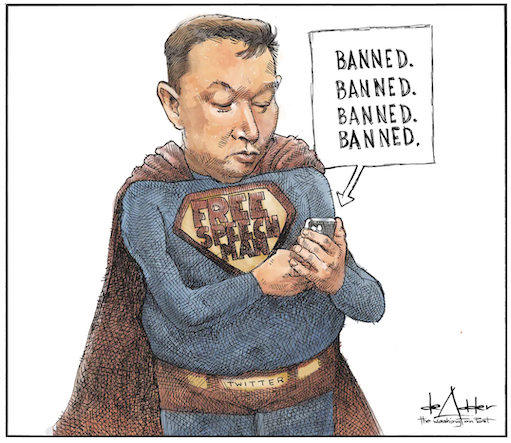 While it was obviously naive to believe that Musk would rule Twitter as the “free speech absolutist” he promised to be, the suspensions nonetheless came as a surprise to many, marking a massive change in the platform’s treatment of journalists who critically cover its owner. https://www.vanityfair.com/news/2022/12/elon-musk-assassinated-censors-twitter