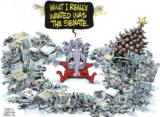 That narrative had the effect of convincing gullible Republican voters choked by disappointment and still sick with love for Trump that there was no way the January 2021 runoff to decide the state’s two Senate races could possibly be fair. As a result, nearly 500,000 voters who had come out for the general election in November stayed home when the runoff came around. An Atlanta Journal-Constitution study found that “the most precipitous declines occurred among Republican voters.” The falloff was steepest in places, like Valdosta County, where Trump had held rallies nominally in support of the Republican Senate candidates, in which he spent his time railing against the supposedly monstrous injustice that had been done him. https://www.commentary.org/articles/john-podhoretz/gop-trump-apocalypse/