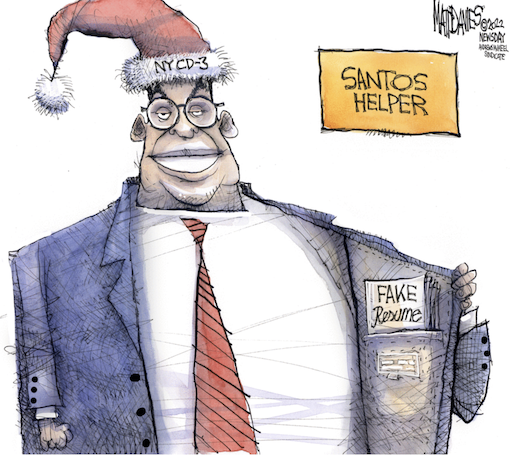 Santos claimed he graduated from Baruch College in 2010, but the college says it has no record of him. Santos also says he worked at Citigroup and Goldman Sachs, but those firms apparently have no record of him, either. According to his financial disclosure form, he drew a $750,000 salary from some company named the Devolder Organization, but it has no website or LinkedIn. Santos claims it’s a “family firm” that managed $80 million in assets, but he didn’t list any of its clients in his disclosures.