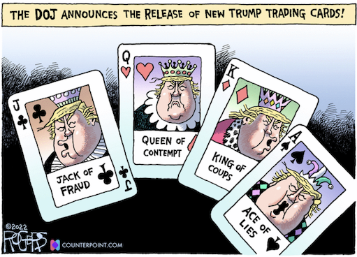 The Trump NFT infomercial is beyond parody. Jesus Christ on a Popsicle stick levels of beyond parody. According to the Daily Beast, while some people in Trumpworld appear to understand how embarrassing all of this is, others insist this is the coolest thing a politician has ever done. One source—and we’re not definitively saying this was Don Jr. but it sure sounds like something he would say!—called the cards ”badass.” https://www.vanityfair.com/news/2022/12/donald-trump-major-announcement-nft-digital-trading-cards