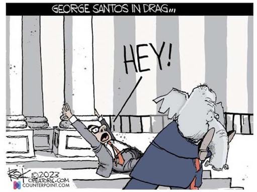 “Laugh if you want to, but people also said Trump himself was too crazy to ever win. The right has fallen so far into extremism, that for many this (Trump and MTG) is the ultimate dream team. The threat is very real.” — The Lincoln Project https://twitter.com/ProjectLincoln/status/1618420967482466305Speaker McCarthy is taking unprecedented actions this Congress to deny some committee assignments to the Minority without proper due process again. As I spoke against it on the House floor two years ago, I will not support this charade again. Speaker McCarthy needs to stop “bread and circuses” in Congress and start governing for a change.” — Rep. Victoria Spartz (R-Indiana) in a statement objecting to the “charade” of kicking members off their committees. https://spartz.house.gov/media/press-releases/spartz-issues-statement-proposed-committee-removals-mccarthy-needs-stop-bread