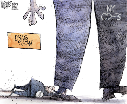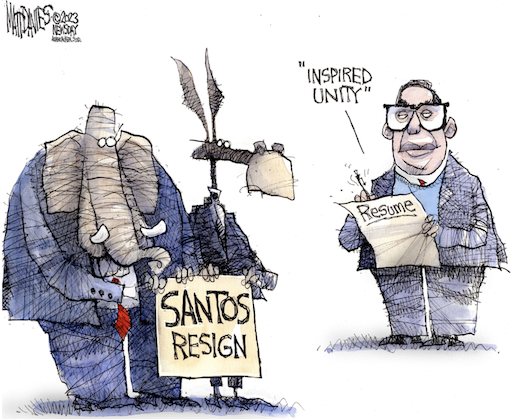 With so many committees overloaded with loons, it’s but a matter of time until things blow up. In an embrace of mayhem, the National Republican Campaign Committee adopted as its new slogan “bring the tiger,” Politico’s Olivia Beavers reports. That’s a reference to a mock lip-reading video of McCarthy’s famous fight on the House floor this month with Rep. Matt Gaetz (R-Fla.) in which McCarthy says “I brought the tiger.”
