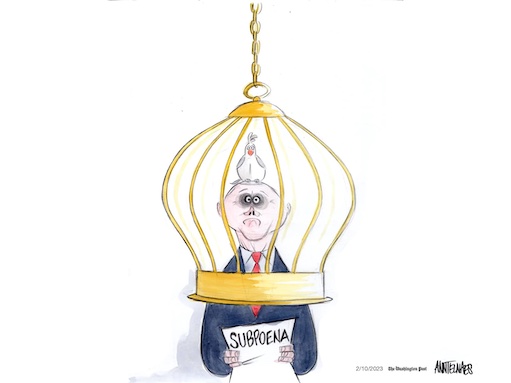 McCarthy can’t afford to alienate any of his members, so he can’t even rid his caucus of a confessed impostor, Rep. George Santos (R-N.Y.), despite calls by GOP leaders in Santos’s own district for his ouster. Offended by Santos’s presence at the State of the Union, Sen. Mitt Romney (R-Utah) confronted him publicly and then later described Santos as a sick puppy.