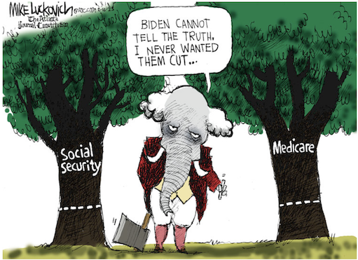 Last year the Republican Study Committee – a House caucus which includes about 75% of all House Republicans – released a proposed 2023 budget which included basically every kind of Social Security cut on offer.The Blueprint to Save America proposed raising the eligibility age at first to 70 and then higher if and when life expectancy goes up; it proposed cutting (or in their words ‘modernizing’) the benefit formula for everyone currently 54 and under; means-testing Social Security benefits; including work requirements for some Social Security beneficiaries; and allowing people to divert payroll taxes into private investment accounts – aka retirement freedom. https://talkingpointsmemo.com/edblog/three-quarters-of-house-gops-endorsed-social-security-cuts-last-year