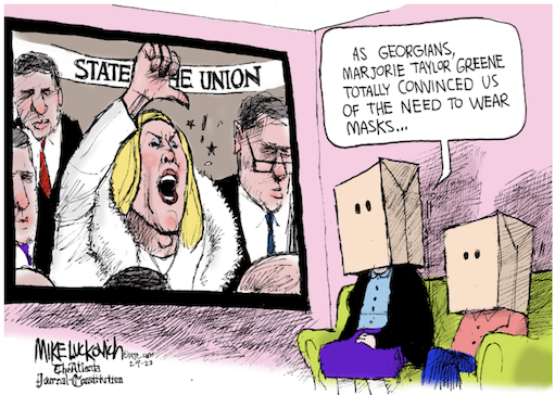 The display — captured in images of Representative Marjorie Taylor Greene, her mouth wide open as she booed and gave a thumbs down to the president — reflected the ethos that has come to define the Republican-led House, where an emboldened right wing that styles itself after former President Donald J. Trump is unapologetic about its antipathy for Mr. Biden and eager to show it in attention-grabbing ways. https://www.nytimes.com/2023/02/08/us/politics/biden-heckling-house-republicans.html
