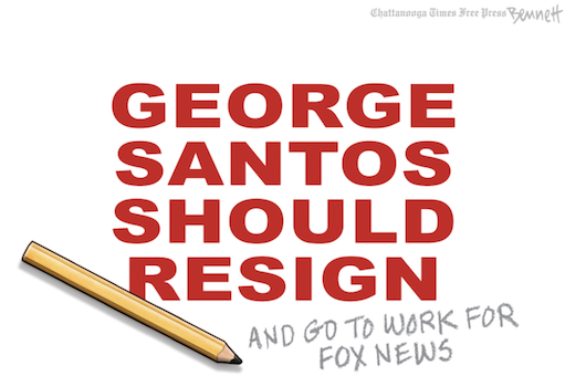 Rep. George Santos (R-NY) lied to a Seattle judge about working for Goldman Sachs while speaking at a 2017 bail hearing for a family friend who later pleaded guilty to fraud in an ATM skimming scheme. https://www.politico.com/news/2023/02/24/george-santos-lied-to-a-judge-in-2017-bid-to-help-a-family-friend-charged-with-fraud-00084341In Sharing Video With Fox Host, McCarthy Hits Rewind on Jan. 6