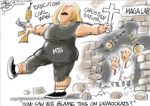 “We’re fed up with Democrat policies, we’re fed up with the woke ideology being shoved down our throat, and we’re tired of our children being brainwashed into these same ideas. We want our own safe space and we deserve it.” — Rep. Marjorie Taylor Greene (R-GA), on Fox News. https://twitter.com/atrupar/status/1630758334453239810