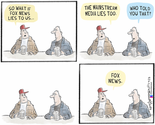 The episode has also further discredited Fox News as it reels from extraordinary revelations showing network executives and personalities privately acknowledging in emails and texts that claims of a stolen election were preposterous even as they amplified those claims on the air. It’s long been argued that Fox News is in no real sense a news organization but is instead a propaganda machine that advances the interests of the Republican Party. That’s never been more clear than it is today.