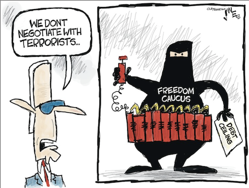 The recent collapse of two large regional banks rattled global markets, raising concerns about financial stability during a precarious moment for the U.S. economy. Would this backdrop of uncertainty, we wondered, cause House Republicans to grow wary of launching a debt limit showdown?From conversations with top GOP lawmakers at the House Republican retreat this week in Orlando, the answer is a hard no. Instead of expressing caution, senior GOP lawmakers are leaning into their plans to demand spending cuts in return for raising the nation’s borrowing limit.” https://punchbowl.news/archive/32223-punchbowl-news-am/