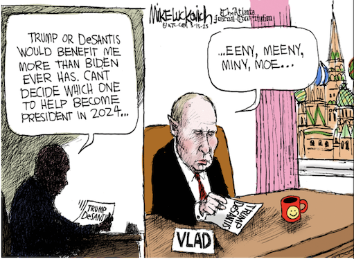 Written out like that, you can see the missing piece. DeSantis is surely intelligent and disciplined enough to see it too. But the programming installed in him prevents him from acting on what he sees. His approach to winning the nomination will put the general election beyond his grasp. He must hope that some external catastrophe will defeat his Democratic opponent for him—a recession, maybe—because DeSantis is choosing a path that cannot get him to his goal. https://www.theatlantic.com/ideas/archive/2023/03/desantis-ukraine-pro-russia-position-gop-presidential-nomination/673392/