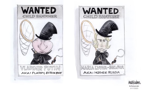 Top Ukrainian and European officials hailed the announcement as a crucial step toward holding Russia accountable. In an address, Ukrainian President Volodymyr Zelensky called the warrants an indictment of Russia’s “state policy, state decisions, state evil.” https://www.washingtonpost.com/world/2023/03/17/icc-hague-arrest-warrants-putin-russia-ukraine/