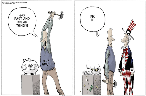 None of this has anything to do with the actual cause of the bank collapse — rising interest rates, overinvestment in long-term government bonds or bank deregulation — but, of course, solving the problem isn’t the goal. The goal is to blame the libs. Case in shameless point: Sen. Ron Johnson (R-Wis.) insisted wokeness was to blame for the massacre of 19 young children in Uvalde, Tex. Apparently, we’ve stopped teaching “values” in our schools, and we’re teaching “indoctrination” instead. Really, indoctrination? In Texas?