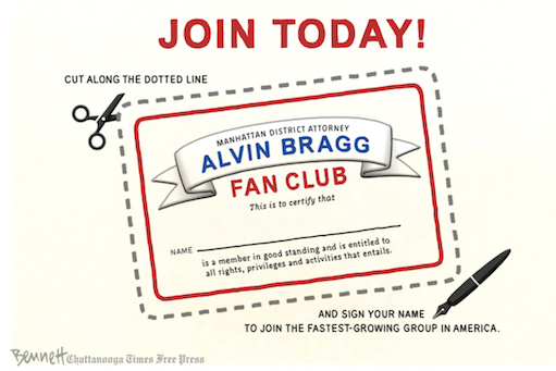 “Karma.” — Yusef Salaam, one of the five boys wrongly accused of gang raping a female jogger in New York’s Central Park in 1989. Will Trump get the presumption of innocence the five boys in Central Park jogger case did not? https://www.usatoday.com/story/news/nation/2023/03/31/yusef-salaam-calls-trump-indictment-karma/11578222002/Republican lawmakers efforts to conduct oversight into his investigation of Donald Trump represents a “dangerous usurpation” by Congress that could impinge upon the former president’s rights. — Manhattan District Attorney Alvin Bragg (D) https://thehill.com/regulation/court-battles/3927692-bragg-warns-gop-effort-to-oversee-ongoing-trump-case-is-dangerous-usurpation/