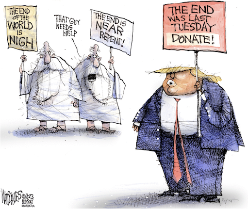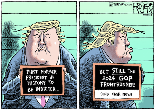 So, yes, many of Trump’s most ardent supporters will be enraged by this indictment and any others. There is no telling if that will lead to trouble in the streets. But will it win Trump back the Presidency? Will his getting arrested in the middle of a national campaign really win back suburban voters and independents who voted for him in 2016 but abandoned him in 2020 for Joe Biden? How many voters will say, in effect, Yes, I was deeply embarrassed and ashamed by the spectacle of January 6th, but now having seen Donald Trump in the dock and hearing the resonant phrases “porn star,” “catch and kill,” and “hush money”—much less “incitement to insurrection” and “election fraud”—I am summoned back to the maga fold? Once more, the American political imagination reels and the stakes for American democracy could not be higher. https://www.newyorker.com/news/daily-comment/an-american-tragedy-act-iii
