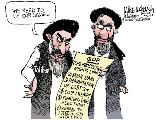 “Trump is joining some of the most incredible people in history being arrested today. Nelson Mandela was arrested, served time in prison. Jesus! Jesus was arrested and murdered.” — Rep. Marjorie Taylor Greene (R-GA). https://twitter.com/therecount/status/1643270948714426370"We did everything for him. I like people that are loyal. When you help somebody, you expect there will be a certain amount of dignity and loyalty. We didn’t get that from Ron. But that’s OK. We’re gonna beat him and beat him very badly." — Donald Trump, in a video attacking Gov. Ron DeSantis. https://twitter.com/RonFilipkowski/status/1640828614030622723