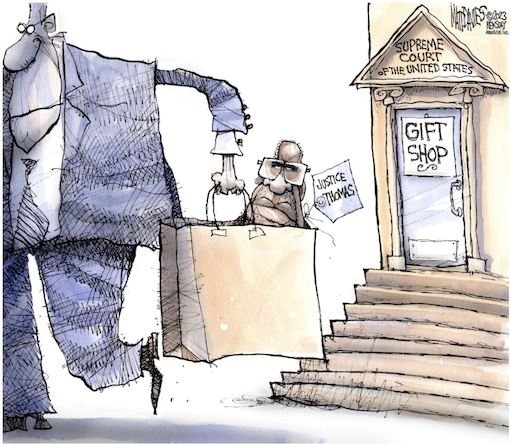 “This is beyond party or partisanship. This degree of corruption is shocking — almost cartoonish. Thomas must be impeached.” -- Rep. Alexandria Ocasio-Cortez (D-N.Y.) calling for Supreme Court Justice Clarence Thomas to be impeached after a bombshell report revealed that he’s been taking luxury trips paid for by a Republican megadonor for decades and not disclosing them. https://www.huffpost.com/entry/ocasio-cortez-clarence-thomas-impeach_n_642ed61ce4b001e12d70dcec