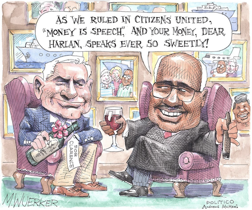 Thomas doesn’t believe in affirmative action or protecting voting rights, though he benefited from both. He does believe in living the good life among millionaires and billionaires whose interests he just happens to protect in his opinions.