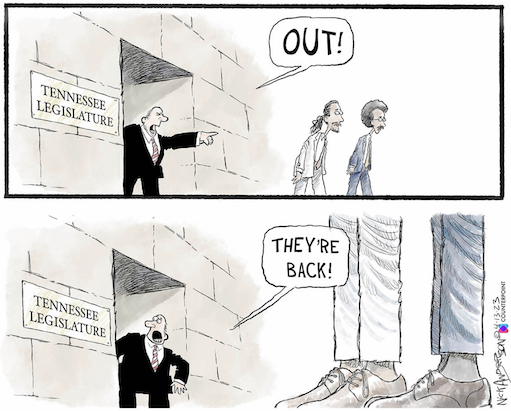 What happened in Tennessee wasn’t an “insurrection.” It was indecorous, a breaking of procedural rules, but it was also an event without violence or destruction, without assaults or deaths, without heavily armed mobs or nooses hanging from gallows. No one in Tennessee will be charged and convicted of seditious conspiracy against the United States. And what happened in Tennessee didn’t include peddling lies and embracing crazed conspiracy theories in order to overturn a free and fair election. So what’s going on here?