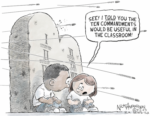 This month, Texas Senate Republicans passed three bills about religion in schools that have historians feeling déjà vu.The first, SB 1515, would require public schools to display the Ten Commandments in a “conspicuous place” in classrooms. The other bill, SB 1396, would permit public schools to set aside time for students and staff members to pray or read the Bible and other religious texts. The third, SB 1556, would give employees the right to pray or “engage in religious speech” while on the job. The bills are on their way to the Texas House for approval. These bills follow Texas’s SB 797, which took effect in 2021 and requires schools to display “In God We Trust” signs.