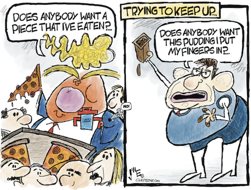 But as Axelrod dryly noted, “If they’re going to get into a food fight, Trump always comes with more food.”