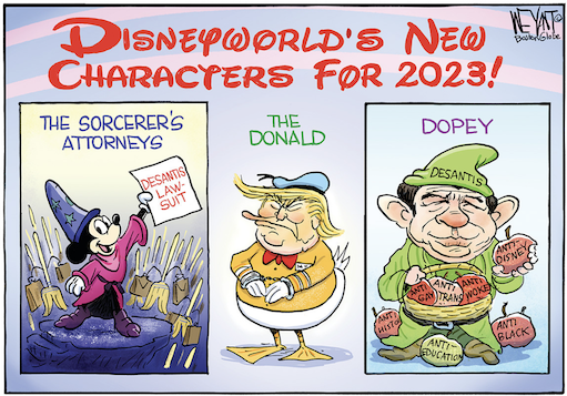 The bitchy Trump has plenty of ammunition when DeSantis wears white boots redolent of Nancy Sinatra, as Jimmy Kimmel said, to tour Southwest Florida after a hurricane; or when a report alleges (denied by the governor) that DeSantis ate chocolate pudding with his fingers. (Trump backers already have an ad up about that beauty.) DeSantis let Fort Lauderdale go underwater, inundated by flash floods, while he gallivanted around testing the waters.