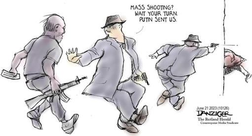 "For the Trump team, they have to run the table. They have to take out every single count, or you've got a 76-year-old man looking at a potentially terminal sentence.” — Jonathan Turley https://twitter.com/AccountableGOP/status/1667244251502071808“No. The definition of a cult is a group of people who are excessively supporting one another and a cause, all about conformity and compliance, and intolerance of anyone who doesn’t agree with what their mission is. That is the definition of what left is engaged in now” — Sarah Palin, when asked on Newsmax if Donald Trump’s supporters are cult members. https://twitter.com/therecount/status/1669039983083020299