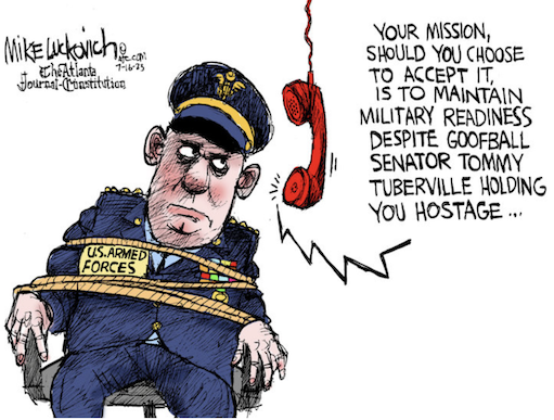 “This is a national security issue. It’s a readiness issue. And, we shouldn’t kid ourselves. I think any member of the Senate Armed Services Committee knows that.” -- Defense Secretary Lloyd Austin told CNN that Sen. Tommy Tuberville’s (R-AL) holds on hundreds of senior military nominations are a “national security issue.” https://www.cnn.com/2023/07/13/politics/lloyd-austin-tommy-tuberville/index.html