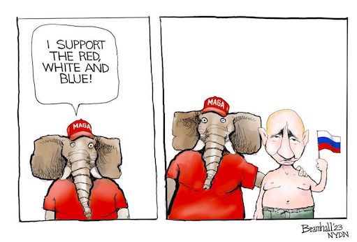 “This is absolute bullshit. This is weaponized government. Democrats can’t win an election so they have to arrest their political opponents.” — Rep. Marjorie Taylor Greene (R-GA), who later called Special Counsel Jack Smith “a weak little bitch for the Democrats.” https://themessenger.com/politics/republicans-back-trump-as-possible-third-indictment-looms
