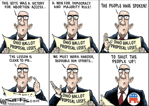 And now it is clear in Ohio, where voters turned out in much larger numbers than is normal in an August election, and voted against the amendment by 14 percentage points in a state that voted for Donald J. Trump in 2020 by about eight points. https://www.nytimes.com/2023/08/09/us/politics/ohio-abortion-issue-1-takeaways.html