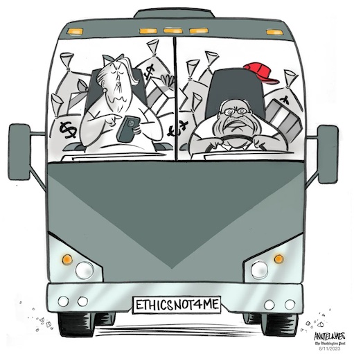 I thought if I wanted to ride in helicopters and play golf in exclusive venues, I would have to give up my dream of unlimited power over other people’s lives. But now I see I was wrong. I was also wrong about needing to know all those laws and precedents! Anyway, I would like to be a Supreme Court justice now. My only complaint for the current justices, until I can join them, is that if you are going to take all these vacations at the behest of billionaires, I wish you would not also come back from those vacations and take my rights away. Just stay on vacation, I say. https://www.washingtonpost.com/opinions/2023/08/11/clarence-thomas-billionaire-vacation-ethics-satire/