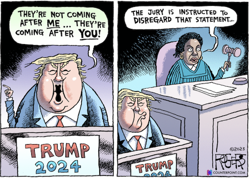 The trials are a continuous spectacle, featuring an all-star cast in far-flung locations. Political reporters are barely heard from, while legal analysts fill the airwaves. Every twist and turn, every motion, every argument is the breathless lead story. Everyone, from prosecutors to co-conspirators, named and unnamed, indicted and unindicted, are characters in Trump’s new reality show – part violent action movie (the insurrection), part sleazy porn flick (Stormy Daniels), part conspiracy thriller (Mar-a-Lago), and part mafia drama (the fake elector racket).But the Trump trials are more than his means; they are his ends. The trials are not the sideshow, but the heart and soul of Trump’s campaign. They have become his essential fundraising tool to finance his defense, his platform for whipping up his followers into a constant state of excitement, and his instrument for dominating the media to make himself the center of attention and blot out coverage of anyone else.