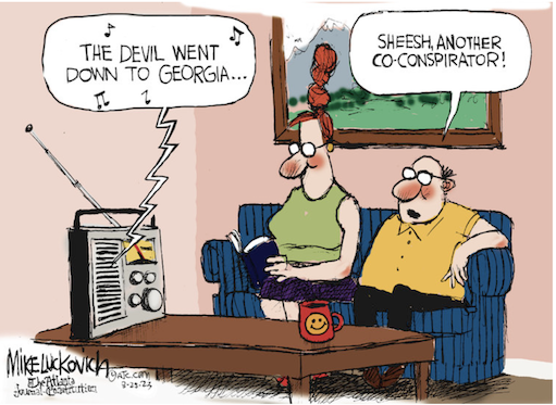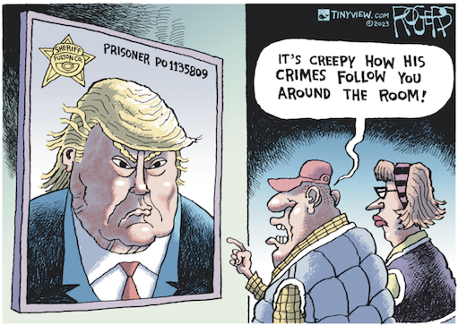 “Ruby Freeman, a Georgia election worker, was lied about, criminalized, terrorized, threatened, and smeared—not by private gangs but by a gangsterized government. What is at stake in the Georgia indictment is whether those who inflicted these intimate cruelties can get away with it and, therefore, be free to do it again.” — Fintan O’Toole https://www.nybooks.com/online/2023/08/17/frame-up-in-georgia-trump-indictment/